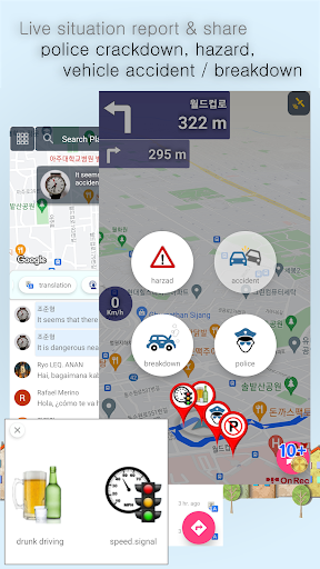 Notification de situation routière en direct SNS - Points et tronçons dangereux de la route - Vitesse de répression policière/signal/alcool, etc. - Accidents et pannes de véhicules - Notification d\alerte vocale à l\approche du point signalé Fonction de traduction vocale des voyageurs étrangers - Presque toutes les langues du monde - La dictée vocale - Traduction de texte photo Détection de somnolence et gestes faciaux - Fonction de détection de somnolence - Ajustez la taille des yeux, le temps de fermeture des yeux et les paramètres d\affichage de l\écran - Réglage de la sortie audio de la phrase d\alarme - Fonction d\alarme de conduite somnolente On/Off - Sélection de périphérique Bluetooth et paramètres de sortie Navigation et cartes - Audioguides pas à pas dans toutes les régions du monde - Configuration rapide du réacheminement en cas de déviation de l\itinéraire - Tableau d\indication de la distance restante actuelle/prochaine étape - Panneau d\information sur le nom de la route de l\étape actuelle - Enregistrez automatiquement les recherches récentes et les lieux de signet - Fonction de clic de marqueur de point d\intérêt (POI) - Boussole liée à la carte/caméra - Fonction de réglage de recherche de lieu dans le monde, le pays, mon rayon central - Trouver des lieux à proximité avec un rayon de recherche spécifié - Description supplémentaire détaillée du lieu de recherche - Informations et prévisions météorologiques sur le lieu de recherche - Tous les lieux de recherche et fonction de partage météo Suivi de localisation en temps réel et partage de mise en miroir transparents - Appel vocal pendant la mise en miroir - Chat voix-texte pendant la mise en miroir - Jusqu\à 10 personnes peuvent être invitées - Fonction de mise en miroir de suivi de localisation/direction en temps réel sans couture - Partage de la mise en miroir du mode conduite-marche Fonction d\enregistrement et d\examen de la caméra de tableau de bord (boîte noire) - Fonction de téléchargement YouTube de la vidéo enregistrée - Options de réglage de la qualité d\image - Option de sélection de stockage - Carte, graphique (vitesse/altitude), fonction de révision de la synchronisation vidéo enregistrée Calcul de la superficie du terrain - Réglage du marqueur infini - Sélectionnez différentes unités de distance/surface - Gestion et partage faciles de la liste de stockage Fonction SNS du village mondial - Rédigez des articles pour des personnes du monde entier et publiez des photos jointes - Traduction instantanée des messages - Fonction de notification automatique de tag de commentaire/sympathie - Fonction de révision des graphiques de la vidéo YouTube enregistrée Cette application est uniquement disponible pour une utilisation en Russie et à partir de 12 ans.