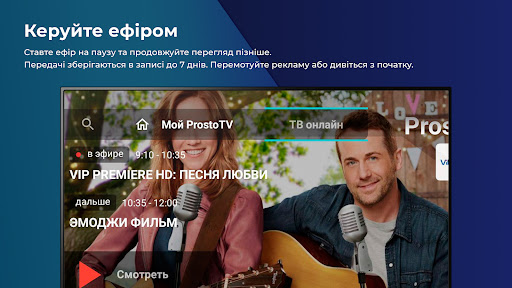 Включайте любимые телеканалы или фильмы онлайн в приложении Prosto TV. Смотрите телевидение где угодно и на любом экране: Smart TV, смартфоне, планшете, приставке. Регистрируйтесь в приложении и просматривайте каналы и кино на максимальном тарифе 7 дней бесплатно. Или выбирайте бесплатный тарифный план – 100 каналов навсегда. Наши преимущества: 300+ каналов 20 000+ фильмов до 5 устройств для отображения HD, 4К качество функции управления эфиром эфир в записи за 7 дней удобный интерфейс персонализация контента гибкие настройки функции поиска по названию родительский контроль Более подробную информацию о тарифах и услугах Вы можете получить на сайте https://prosto.tv/ru/