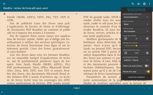 ReadEra is a set of reading apps in one app, which reads well multiple types of formats: book Epub, Kindle (MOBI, AZW3), Fb2; business PDF, Djvu; office Microsoft Word (DOC, DOCX, RTF), ODT; text TXT and others. Reading books, viewing Microsoft Word documents and PDF files from zip archives.